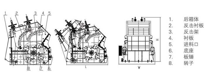 反擊式破碎機機架部分為三分體結構,只須打開破碎機后部機殼,即可進行更換板錘、反擊板、襯板等檢修維護作業,反擊式破碎機零部件的互換性強,易損件少,便于備件的采購和管理;